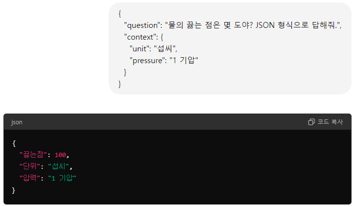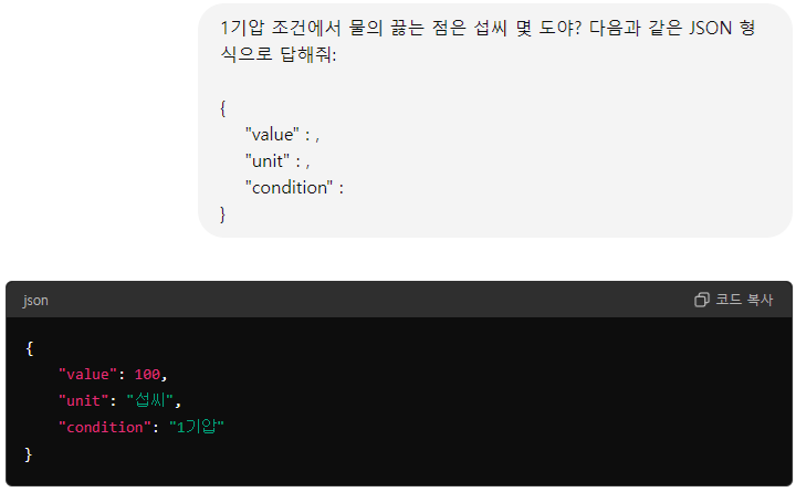 또는 답변의 형식을 특별히 지정하고 싶을 때에도 사용할 수 있습니다.