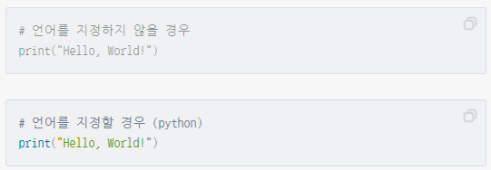 또한 다중 라인 코드 블록이 사용된 부분에는 뷰어가 지원할 경우 '복사하기' 버튼도 함께 나타나서, 안에 있는 예시나 코드를 더 간편하게 복사할 수 있습니다.