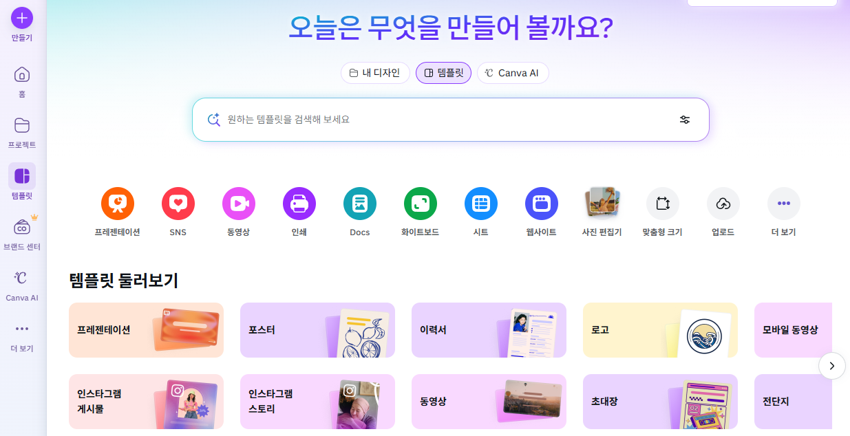 - 방대한 템플릿 라이브러리 : 다양한 용도(소셜 미디어, 마케팅, 프레젠테이션, 인쇄물 등)에 적합한 수십만 개의 전문 디자인 템플릿 제공
