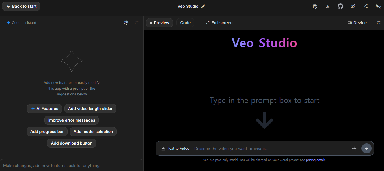- 듀얼 비디오 모델 : LTXV (빠르고 반복적) 또는 Veo 2 (고품질) 선택 가능