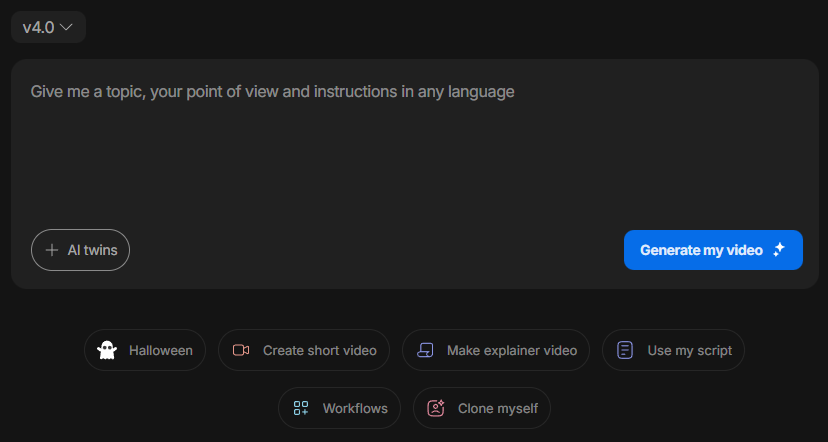 - AI Text-to-Video : 스크립트나 기사 URL을 붙여넣으면 AI가 자동으로 장면, 스톡 미디어, 합성 보이스오버까지 생성