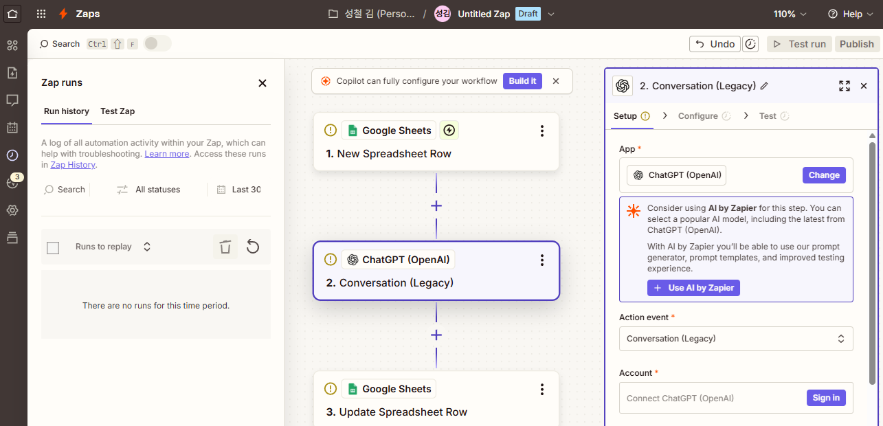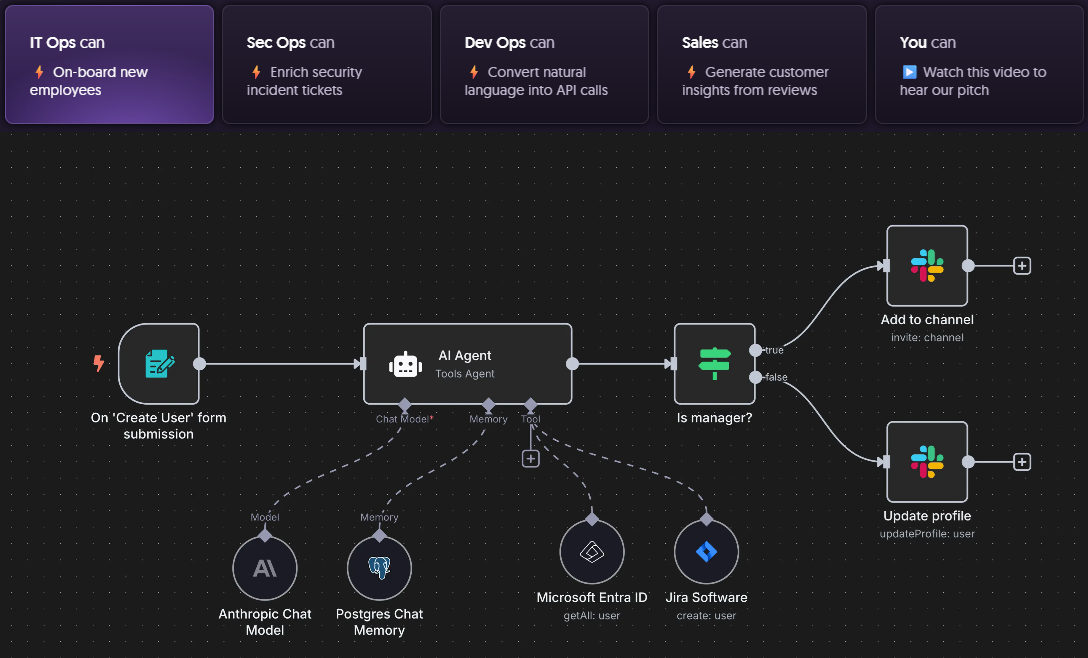- 자연어 워크플로우 생성 : "X에서 정보를 가져와 Y로 보내기" 같은 프롬프트로 워크플로우 자동 생성