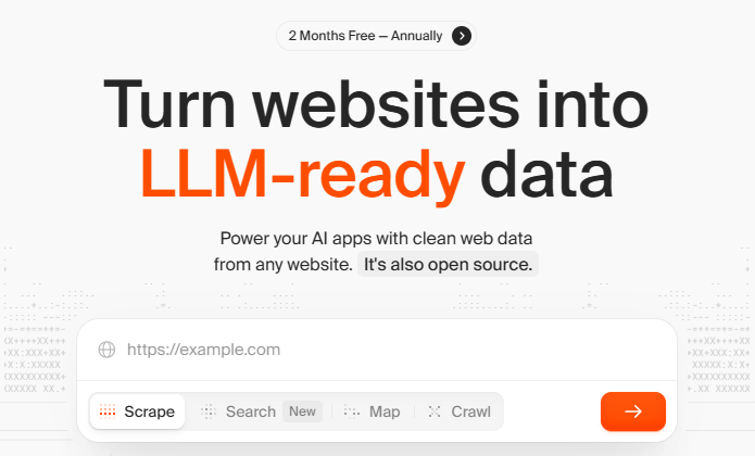 ▶ 개요 : 웹사이트 전체를 LLM 친화적인 마크다운 또는 구조화된 데이터로 변환하는 AI 기반 Web Data API로, JavaScript 렌더링 사이트와 PDF를 포함한 웹의 96%를 커버하며 자연어 프롬프트로 데이터를 추출합니다.