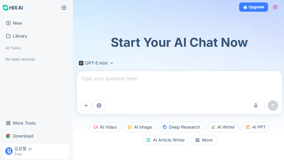 ▶ 개요 : 한국어에 최적화된 AI 플랫폼으로, GPT-5, Claude 3.7, Gemini 2 등 최신 AI 모델을 통합하여 일상과 업무에 필요한 20개 이상의 전문 도구를 무료로 제공합니다.